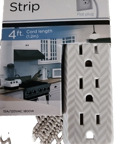 - 6-Outlet Power Strip ~ 4 Ft Extension Cord ~ Grey & White CHEVRON ~ Flat Plug