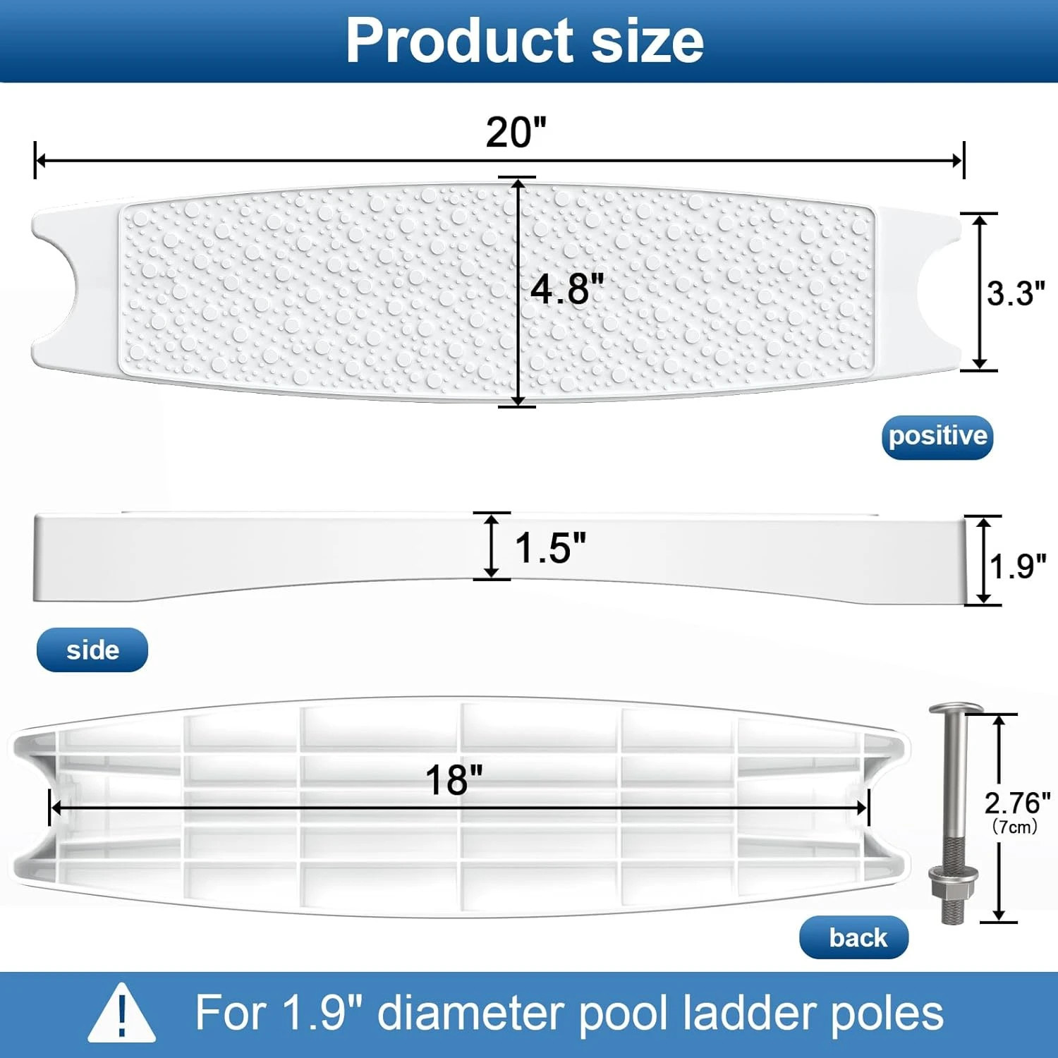 ?Sturdy General Design?Our pool replacement steps is made of heavy duty ABS, which is stronger, better toughness and not easy to break than PP or other plastics. Also equipped with stainless steel bolts to enhance load-bearing and prevent rusting for long-term use underwater. Universal design allows for fitment of 1.9" diameter ladders.