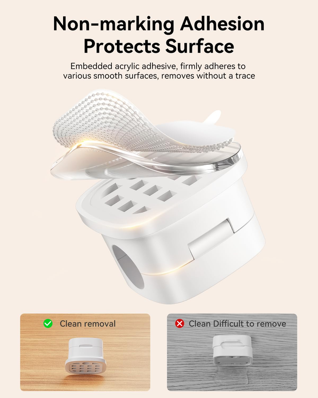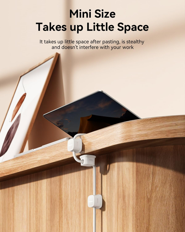 Super Adhesive:The cable management Equipped with Upgrade Acrylic Adhesive, the adhesiveness is increased by 300% compared to ordinary 3M. It firmly adheres to smooth surfaces such as wooden tables/glass/ceramic tiles, and does not leave any residual glue after removal. Each box comes with a Reusable Adhesive Pad, which extends the service life and is more environmentally friendly and economical.