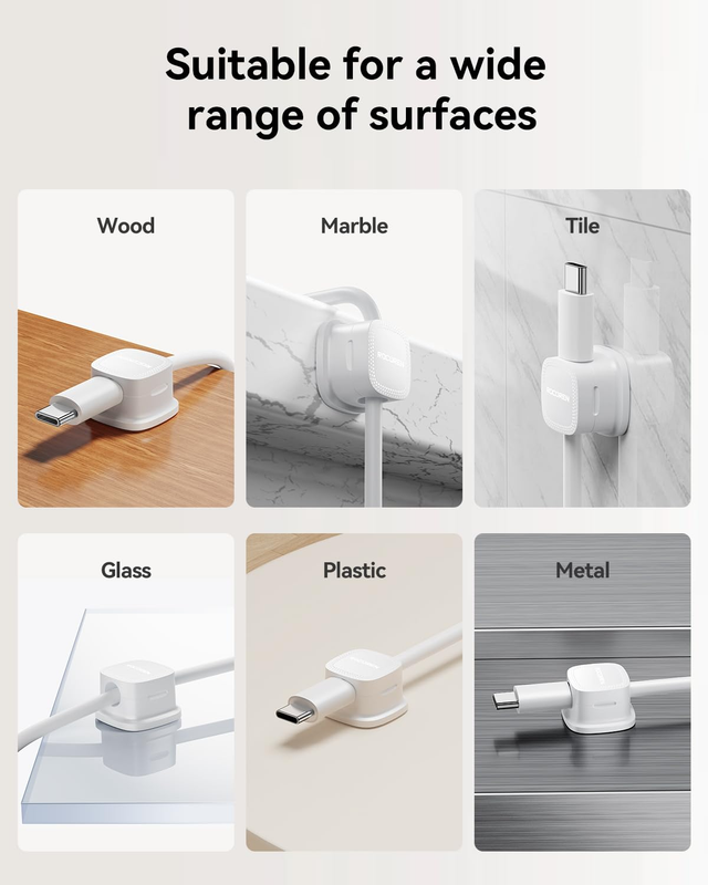 Our magnetic cable clips are suitable for almost any smooth plane in different scenarios, such as office desktops, desks, desk corners, walls or car dashboards, etc.