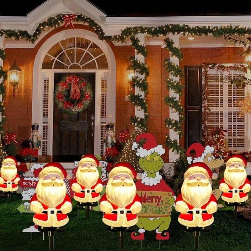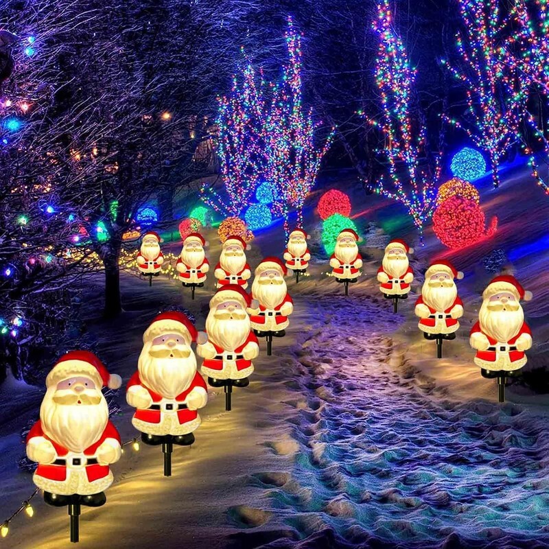 - 6-Pack Solar Christmas Garden Stake Lights, Outdoor Waterproof Solar Santa Claus