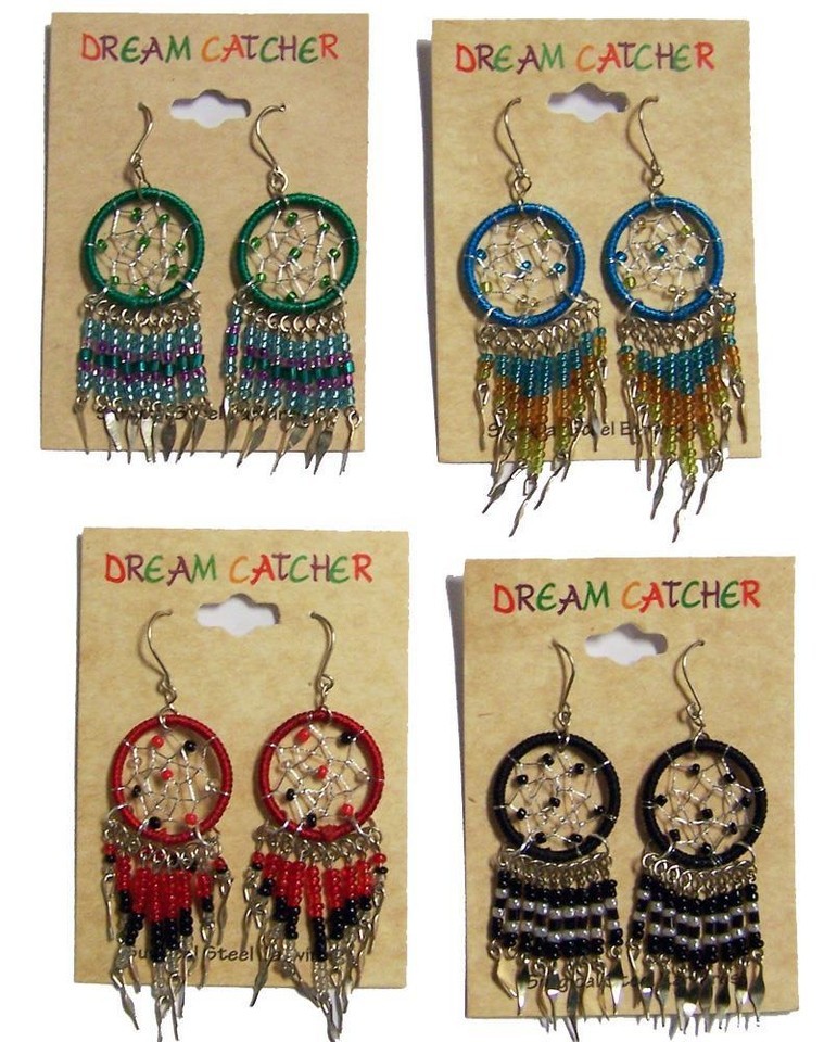 - 6 PAIR ASST COLOR DREAM CATCHER EARRINGS W SEED BEADS surgical steel LADIES
