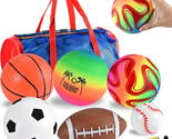 ?6Pcs Color Set?--The outdoor toddler toys set includes not only children's basketball x1, soccer x1, rugby x1, baseball x1, but also rainbow volleyball x1 and rainbow soccer x1. The playground sets for backyards includes an air pump and a storage bag. Easy to carry, no need to purchase duplicate ball toys!