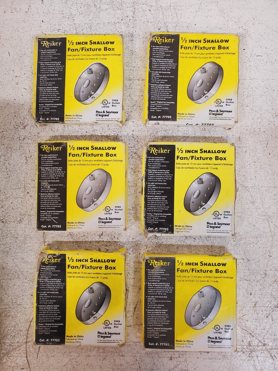 - 6 Qty Pass & Seymour Legrand 1/2" Shallow Fan/Fixture Boxes 77705 | 59E8 (6 Qty)