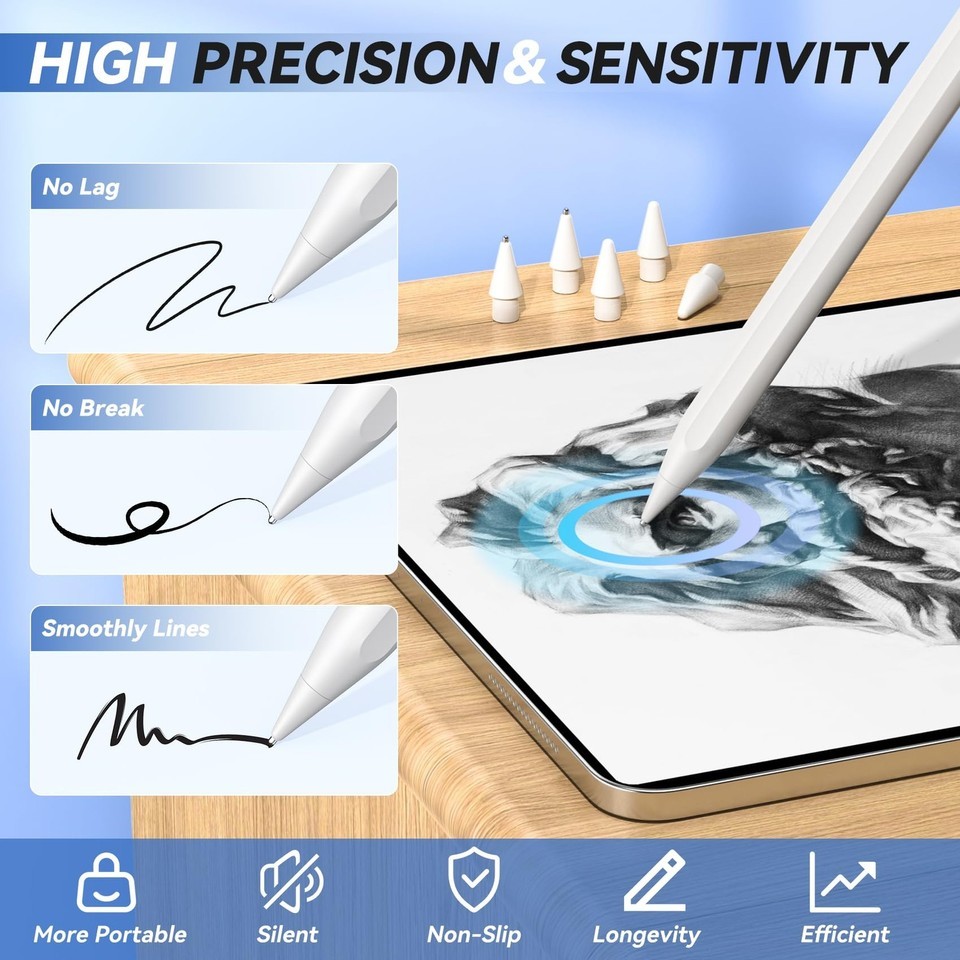 ?Ultimate Sensitivity: Apple Pen tips set has the same pressure sensing and tilt sensing as the original Apple tips, Few seconds twists on the Apple Pencil seamlessly, allowing for smoother writing and drawing without any lag. These iPad Pencil tips are perfect for office note-taking, illustrators, students, and artists.