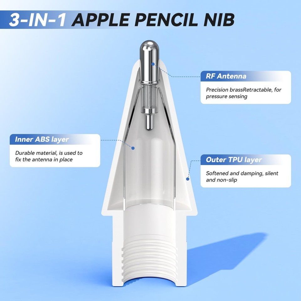 ?Upgraded Pencil Tips Set: Include 3 PCS sturdy slender precise control tips for apple pen, it?s beneficial for tilt drawing,calculation and sketching,allowing you to draw lines and shadows of different thicknesses; PLUS 3 PCS 2B pen tips, ensuring that you have the right tool at the ready.