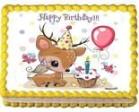 6" Round Pre-Cut Cute Deer Butterfly Bird Balloons Cupcake Candle Happy Birthday