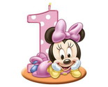 - 6" Round Pre-Cut Pink Baby Minnie Mouse 1st Birthday Candle Edible Image Cake To