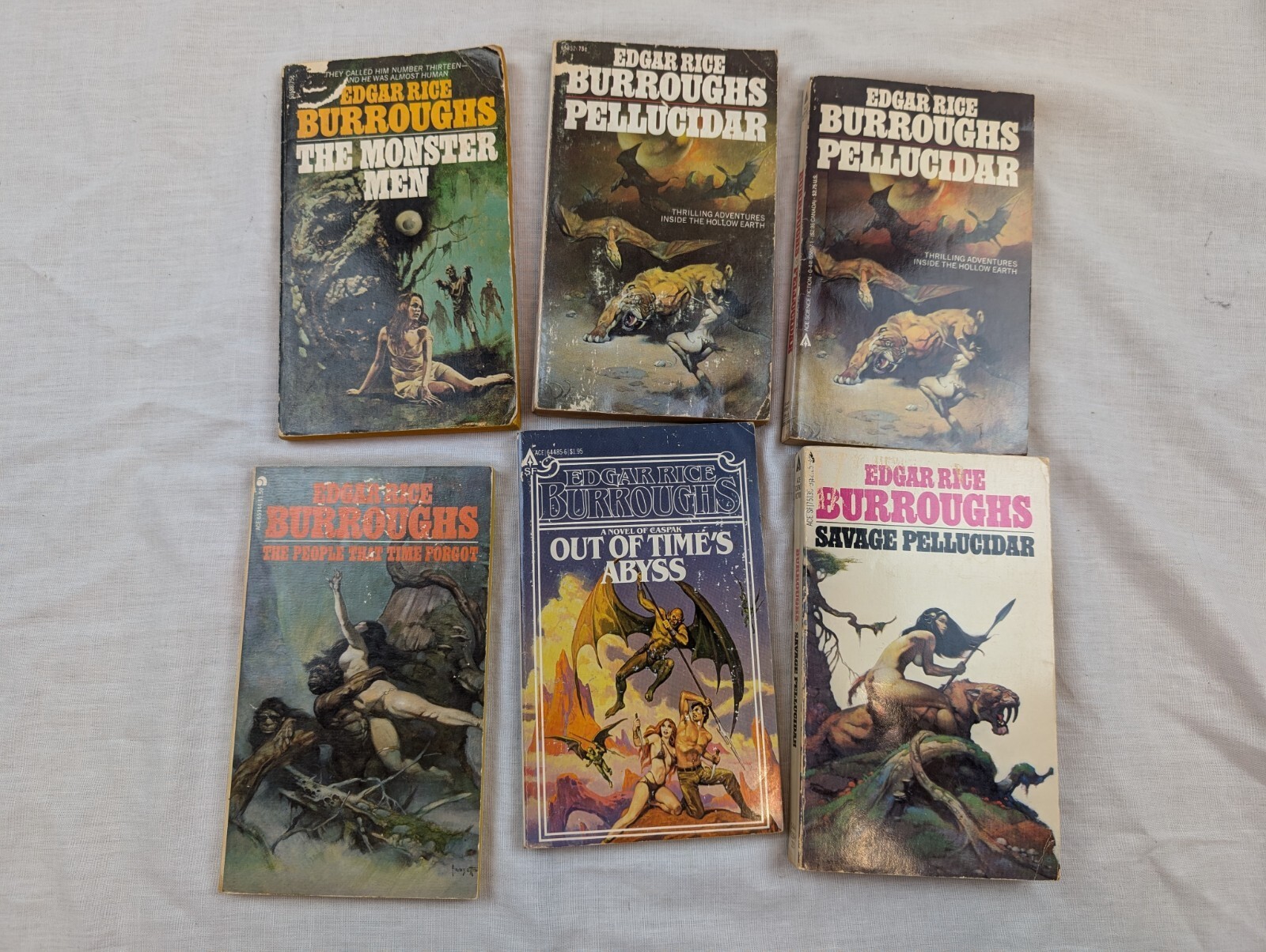 6 Vintage Edgar Rice Burroughs Paperback Book Lot Monster Men Pellucidar ++