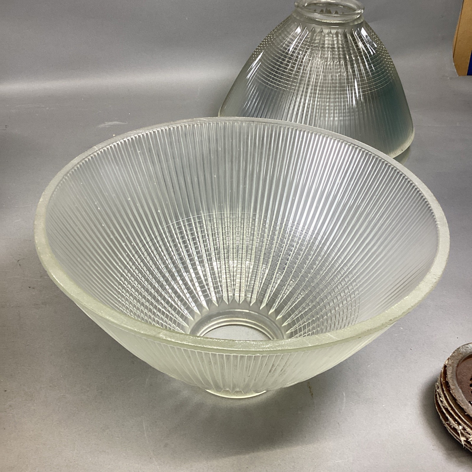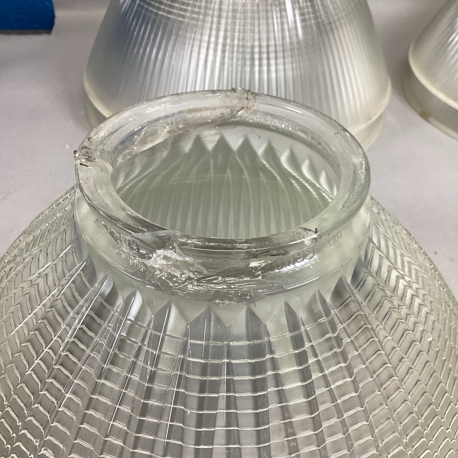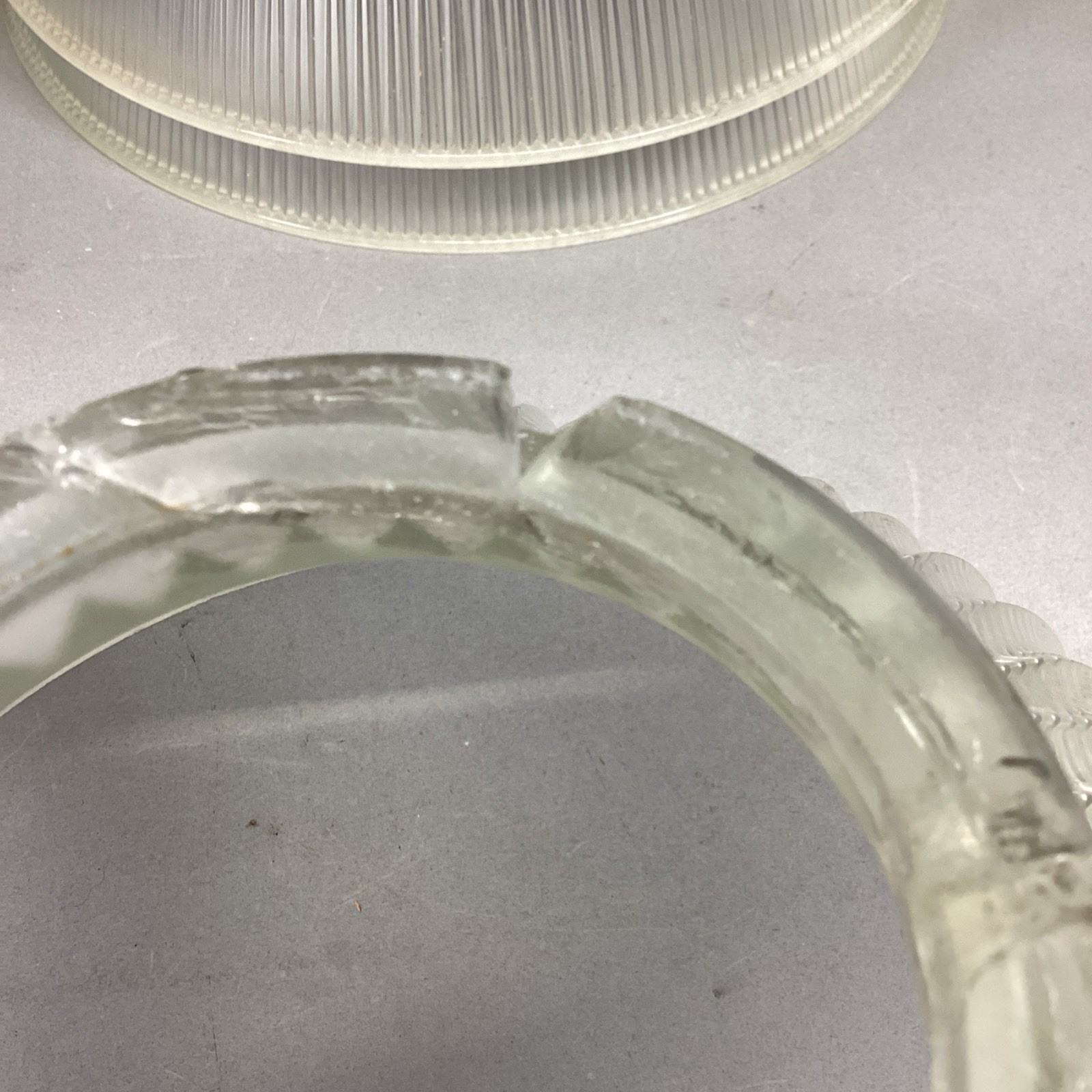 - 6 Vintage Holophane Cut-Art Deco Clear Glass Globe Ceiling Light Shade/Hardware