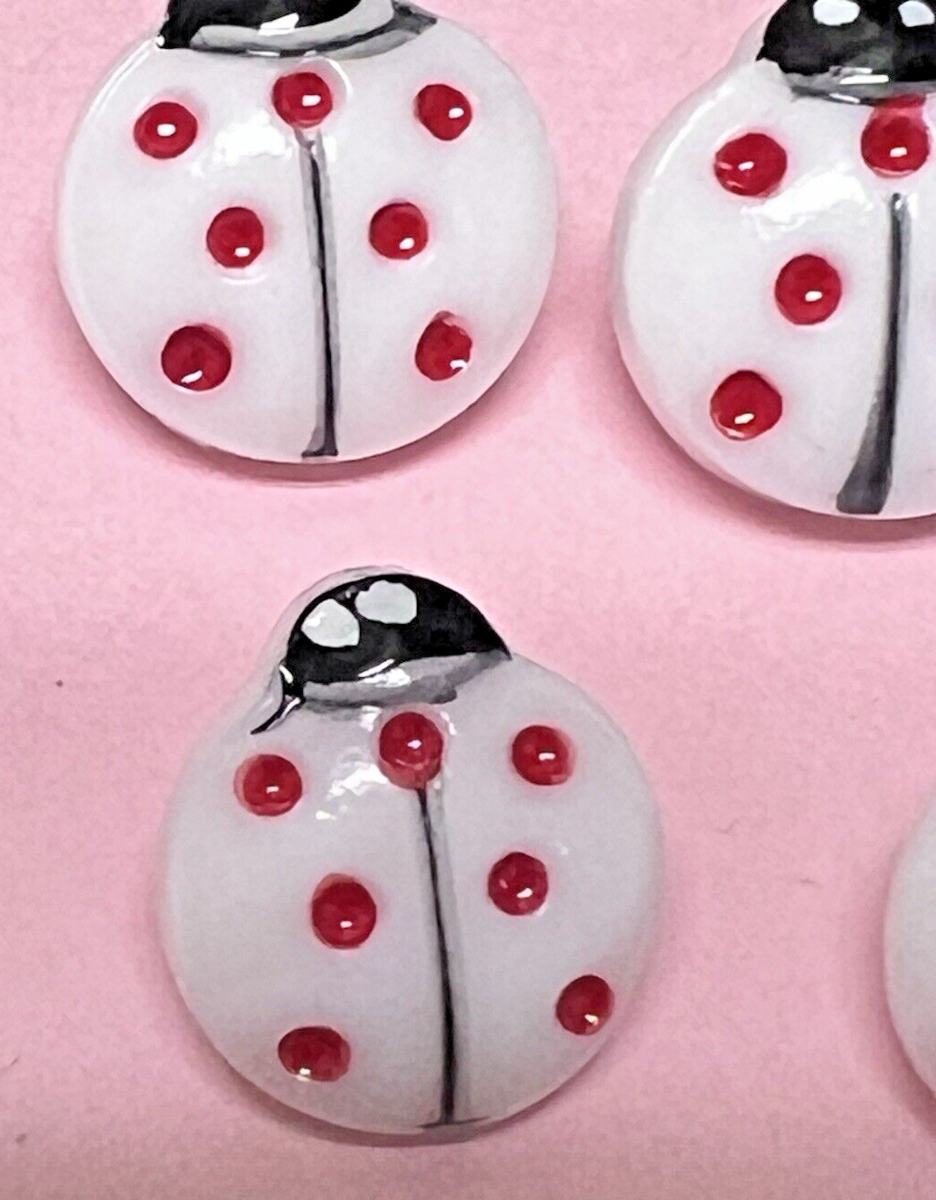 - 6 Vintage Red & Black Milk Glass Ladybug Buttons 1/2 inch