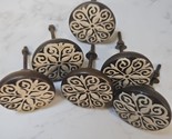 6 Vtg Brass Stamped Drawer Pulls With Hardware Large Round Vintage Knobs