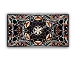- 6'x3' Black Marble Center Dining Table Gemstone Inlay Marquetry Arts Hallway Dec