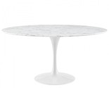- 60" Round Tulip Dining Table White Artificial Marble Top Lacquered Metal Base