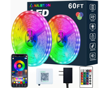 - 60FT RGB LED Strip Lights | Music Sync | Bluetooth App + Remote | 5050 Tape Ligh