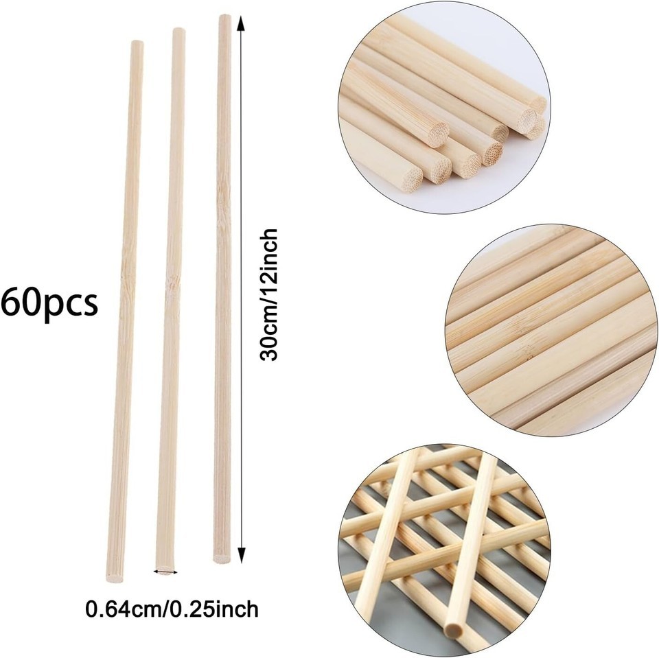 - 60Pcs Wooden Dowel Rods 1/4 x 12 Inch Bamboo Sticks 11.81 x 0.24 x 0.24 inches