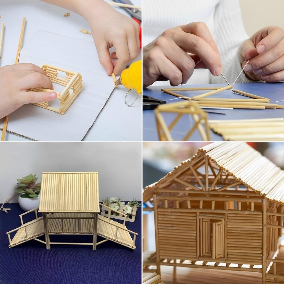The high-quality small bamboo wooden rod is versatile and suitable for craft projects, model construction, furniture decoration, toy cabins, STEM projects, and learning supplies. With dowels for crafting, you can freely explore your imagination to build bridges, towers, or complex mechanical structures. They are also must-have tools for homemade desserts like candy, lollipops, cake pops, and birthday cakes.