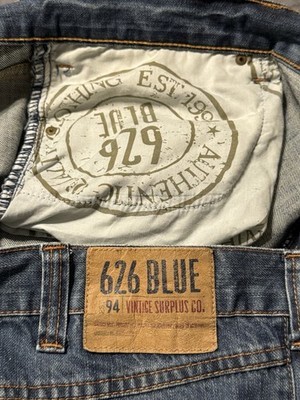 Classic and rugged, these 626 Blue Vintage Surplus Co. jeans deliver an authentic vintage look with dependable everyday comfort. Crafted from 100% cotton denim, they feature a timeless straight-leg fit and distinctive interior branding that sets them apart.