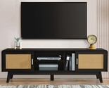 - 63'' Dark Rattan TV Stand, 65'' TV Entertainment Center, Storage & Legs