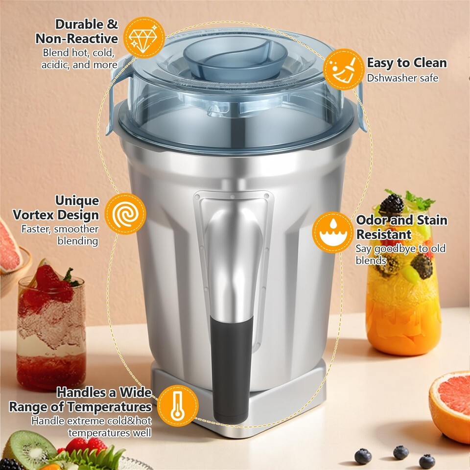 SMART DESIGN EASY CLEANING: Featuring an ergonomic handle, drip-free spout, and secure seal, this replacement for stainless steel container is designed for convenience and precision. The upgraded 4-blade stainless steel design crushes even the toughest ingredients with ease, reaching speeds of up to 38,000 RPM. Cleaning is a breeze?just add warm water, a drop of detergent, and blend for 30 seconds. For longevity, wipe the base dry after each use.