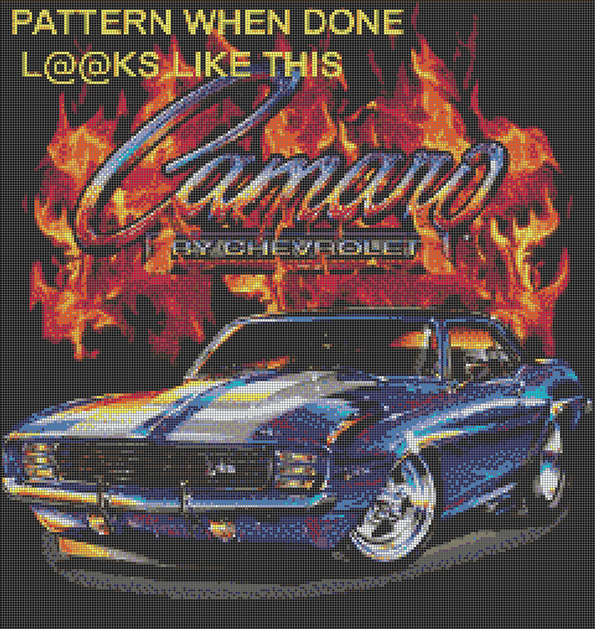 68 Blue Camaro Flames Cross Stitch Pattern***LOOK***