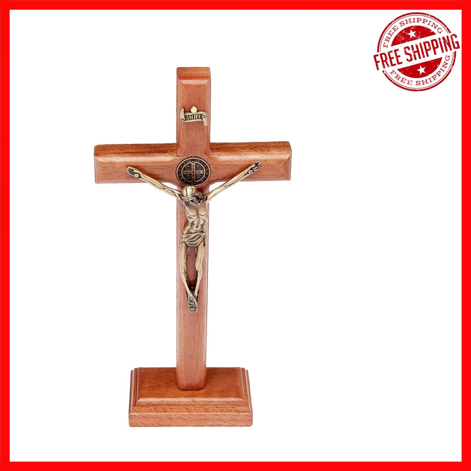 7.5 Inch Solid Wood Crucifix with St. Benedict Medal - Elegant Religious Decor