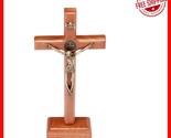 - 7.5 Inch Solid Wood Crucifix with St. Benedict Medal - Elegant Religious Decor
