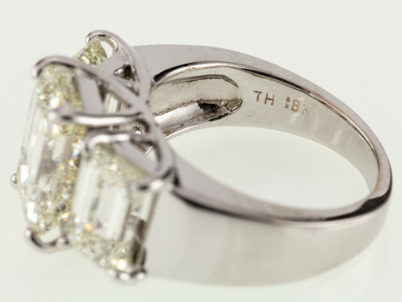 7.66 carat Emerald-Cut 3-Stone 18k White Gold Diamond Engagement Ring