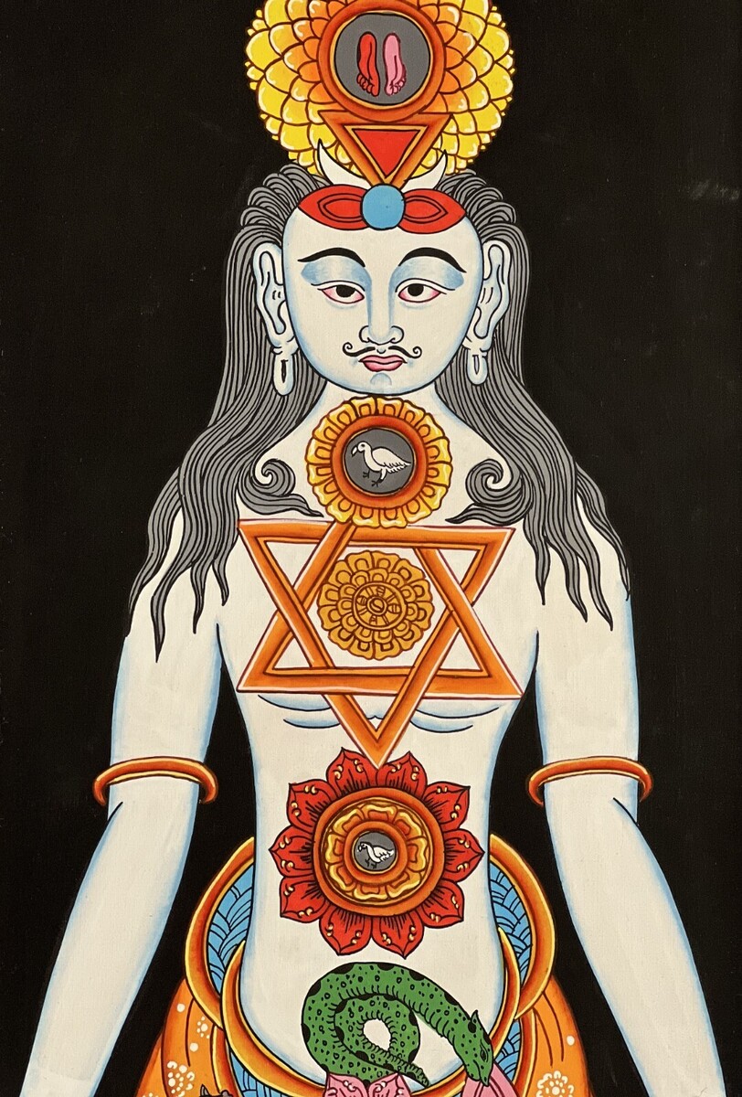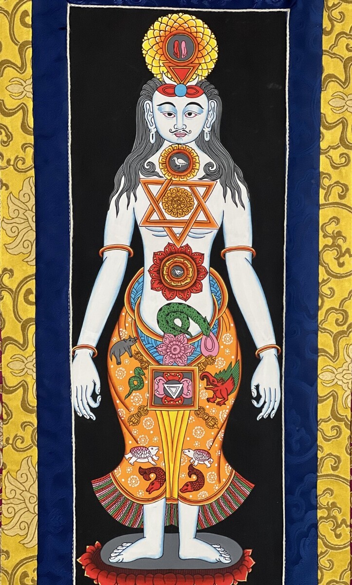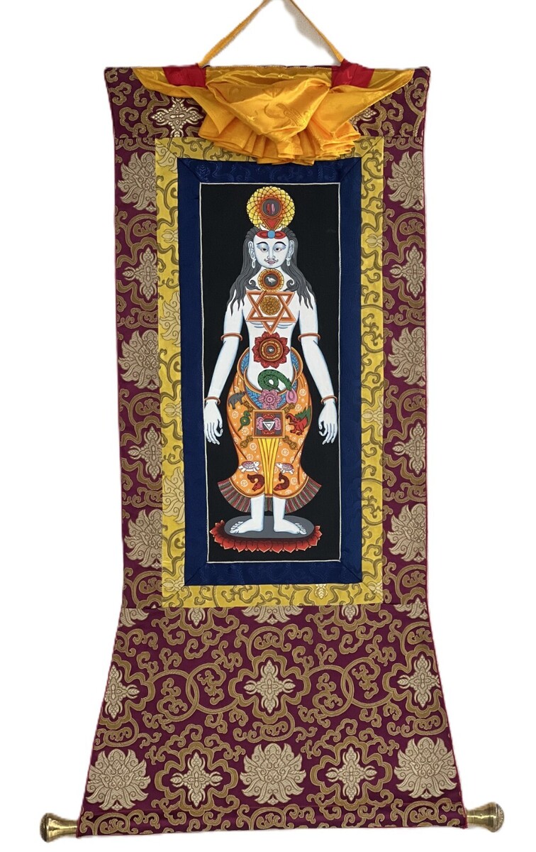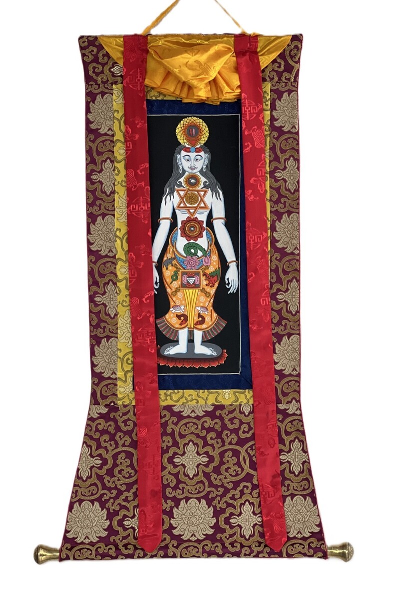 - 7 CHAKRA KUNDALINI HEALING ORIGINAL TIBETAN THANGKA PAINTING WITH SILK BROCADE