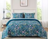 STYLISH BEDDING DESIGN: Comforter set features a bold floral print with rich hues of green, purple, and yellow on one side and a matching blue solid on the other, complemented by a soft solid-green sheet set