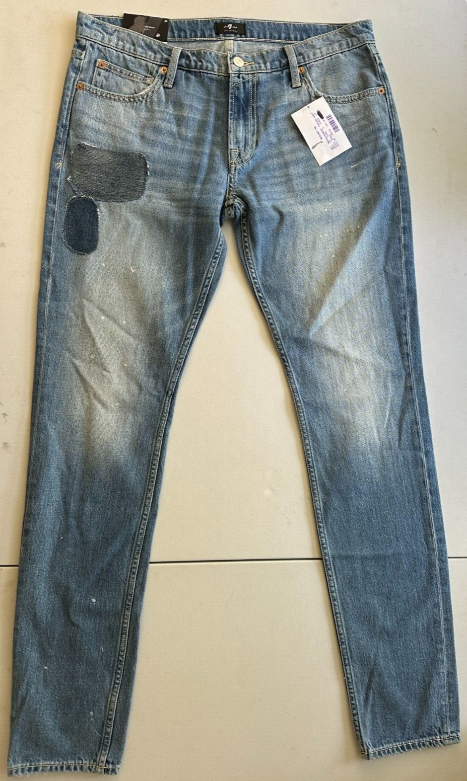 - 7 for All Mankind the Stacked Skinny Jeans in Saturday Afternoon Blue-34/34