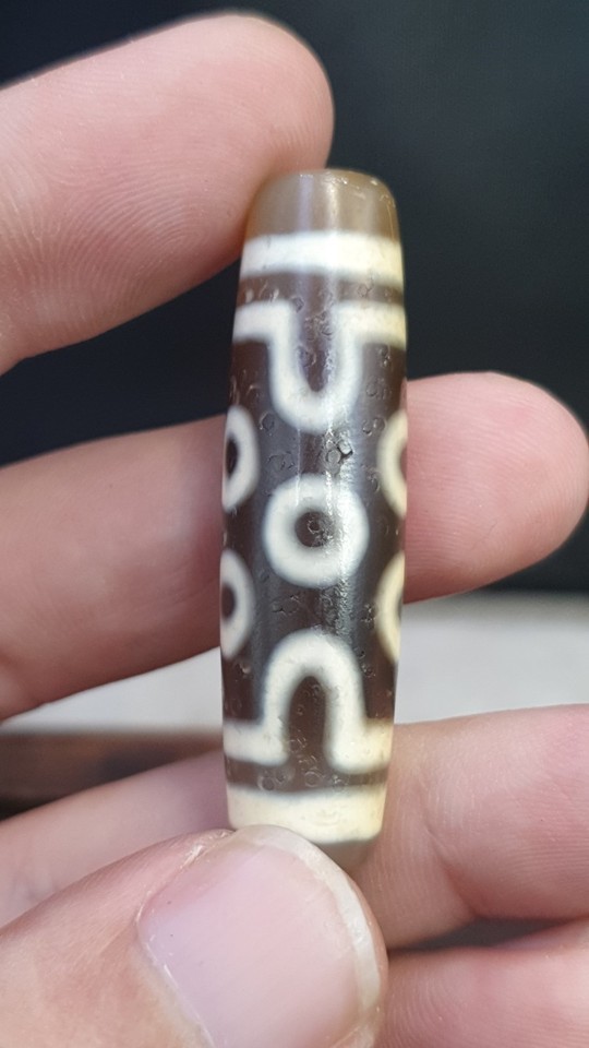 Old Indo Tibetan Agate Eyes lines Arrows Pattern Agate stone Dzi Bead Amulet