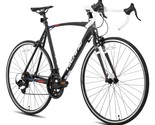 Lightweight Frame: The road bike is designed for people who like to ride or use it for daily commuting; The aluminium frame is lightweight, stiff, durable and capable of higher speeds Brake System: The braking system consists of dual caliper brakes, which are lighter, easier to maintain and last longer than disc brakes, giving you the stable and powerful braking force to stop confidently in all conditions Professional Drivetrain: Road bike with 14-speed derailleur drivetrain for a varied riding experience and total control in any situation, whether on gravel, city streets or other challenging terrain 700C Tires: 700c wheels have less rolling resistance, making riding more efficient, allowing you to go further and using less energy; Large diameter wheels have better rollover characteristics, roll over potholes, bumps and other obstacles more easily Assembly And Size Guide: Size S (49 cm) for women and men between 5'3" to 5'6", Size M (53 cm) for rider between 5'6" 6', Size L (57 cm) for adult between 6'to 6'4"; 85% pre-assembled, easy to assemble, free installation tools include