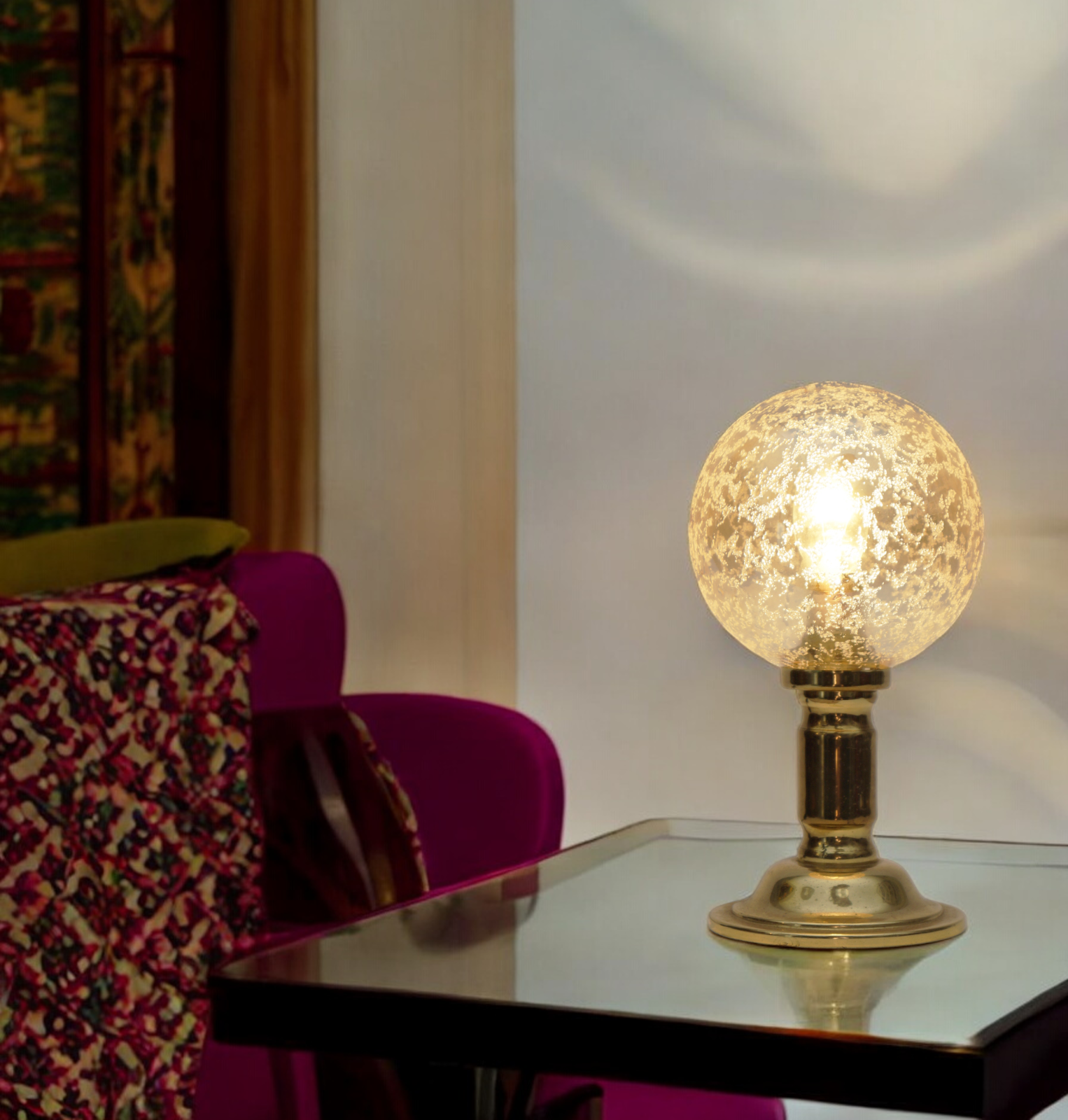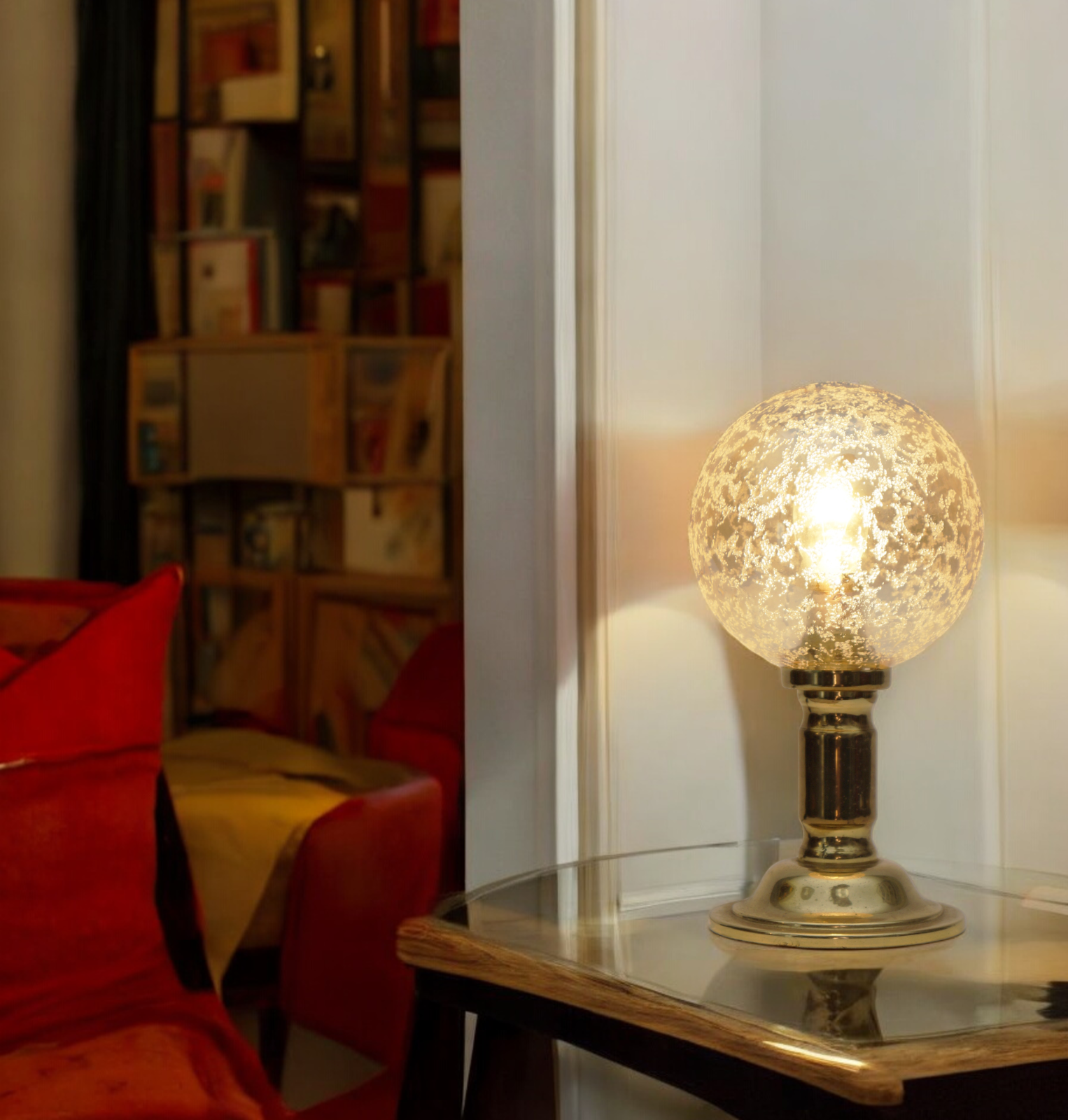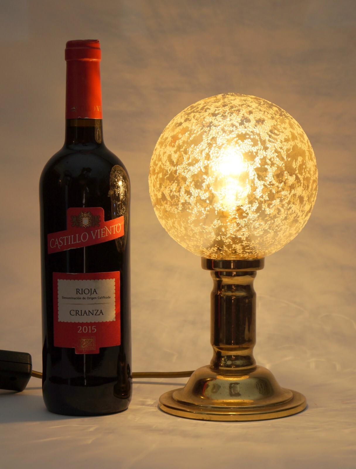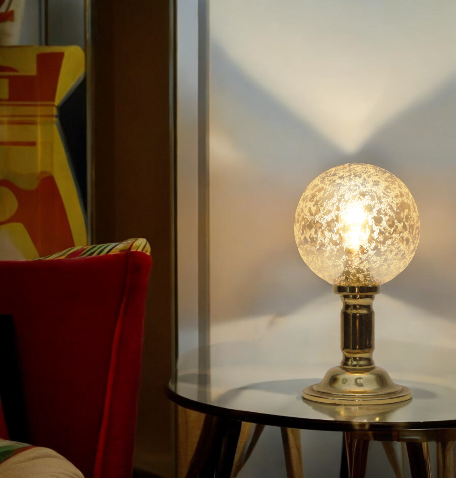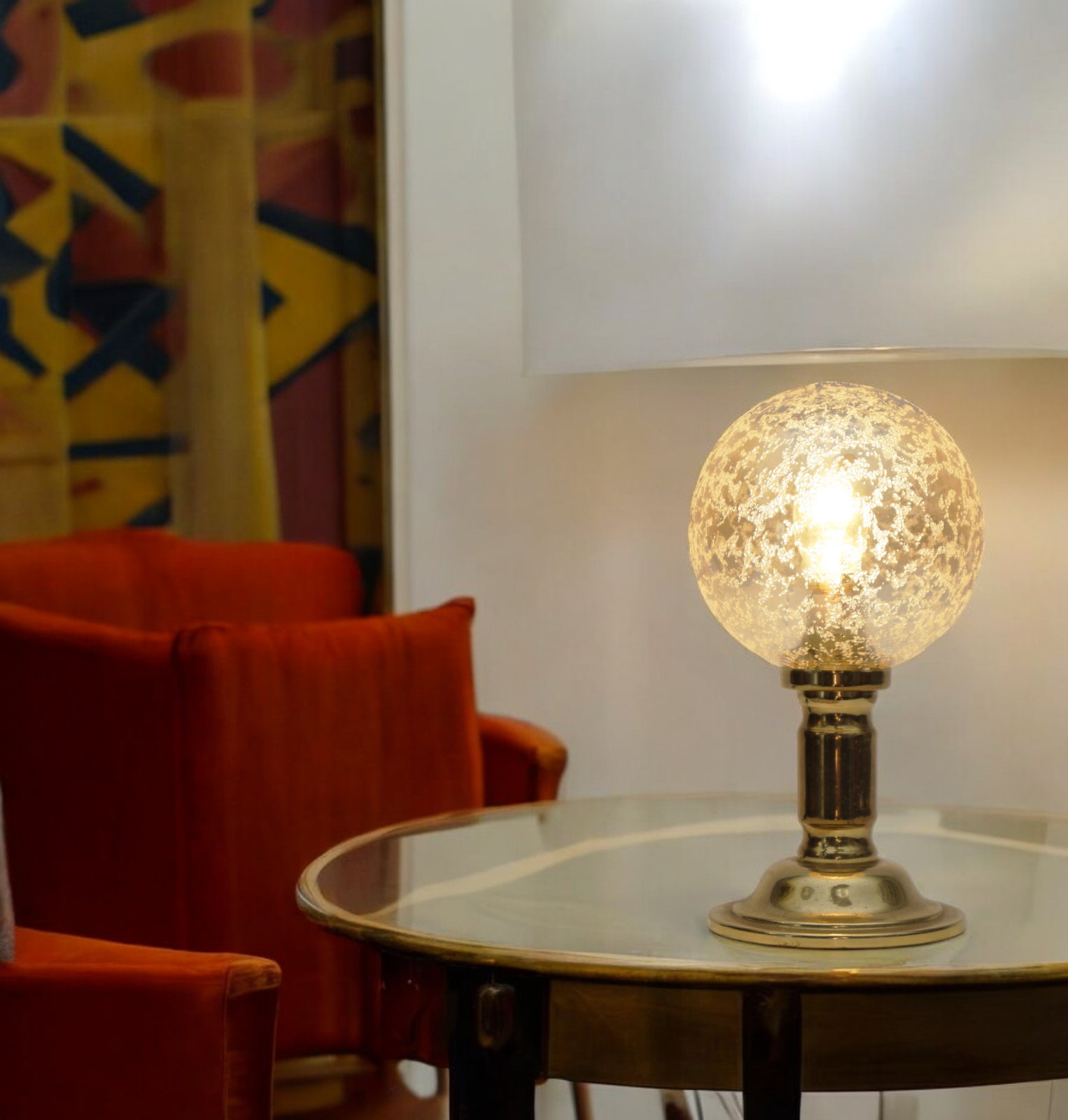 70er Années Laiton Tischlämpchen Table Petit " Little Sphere "