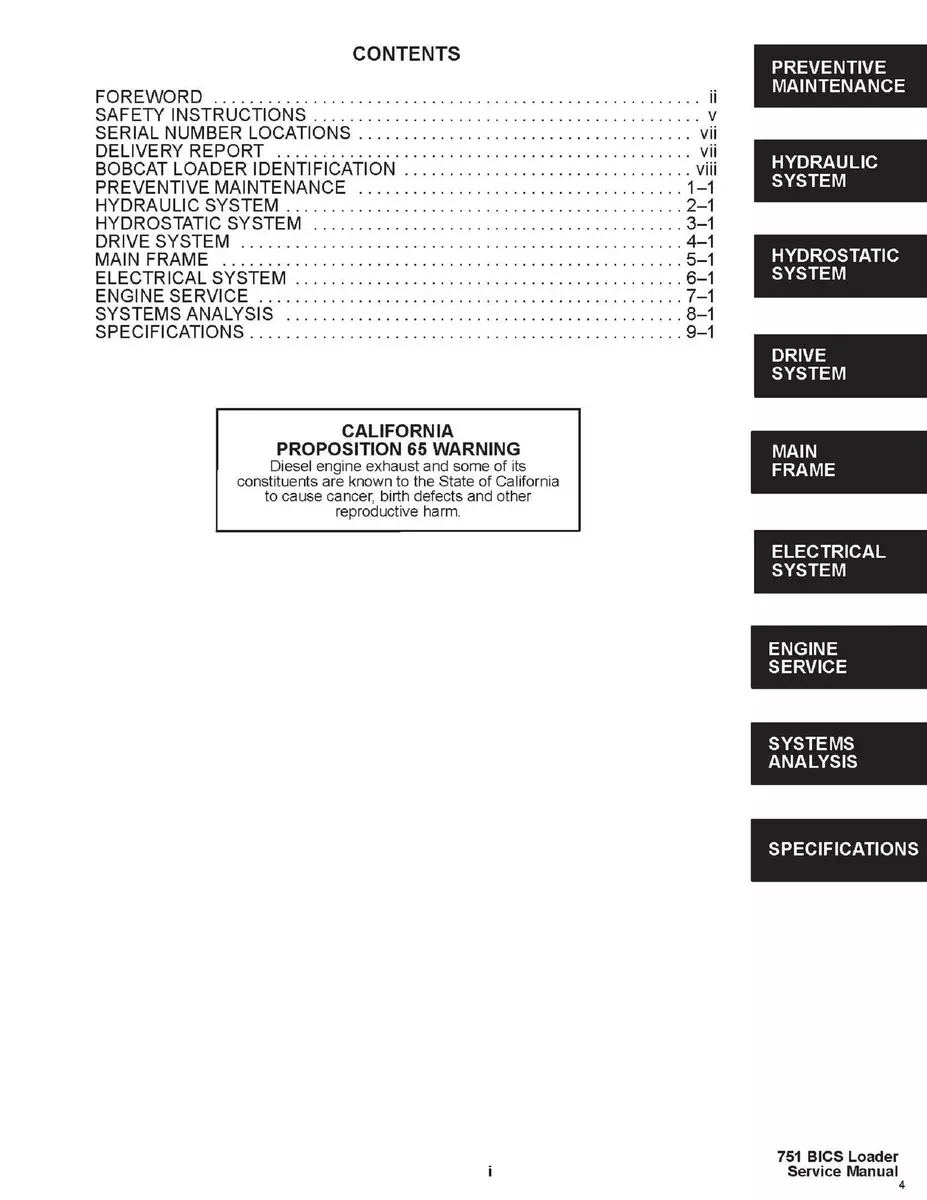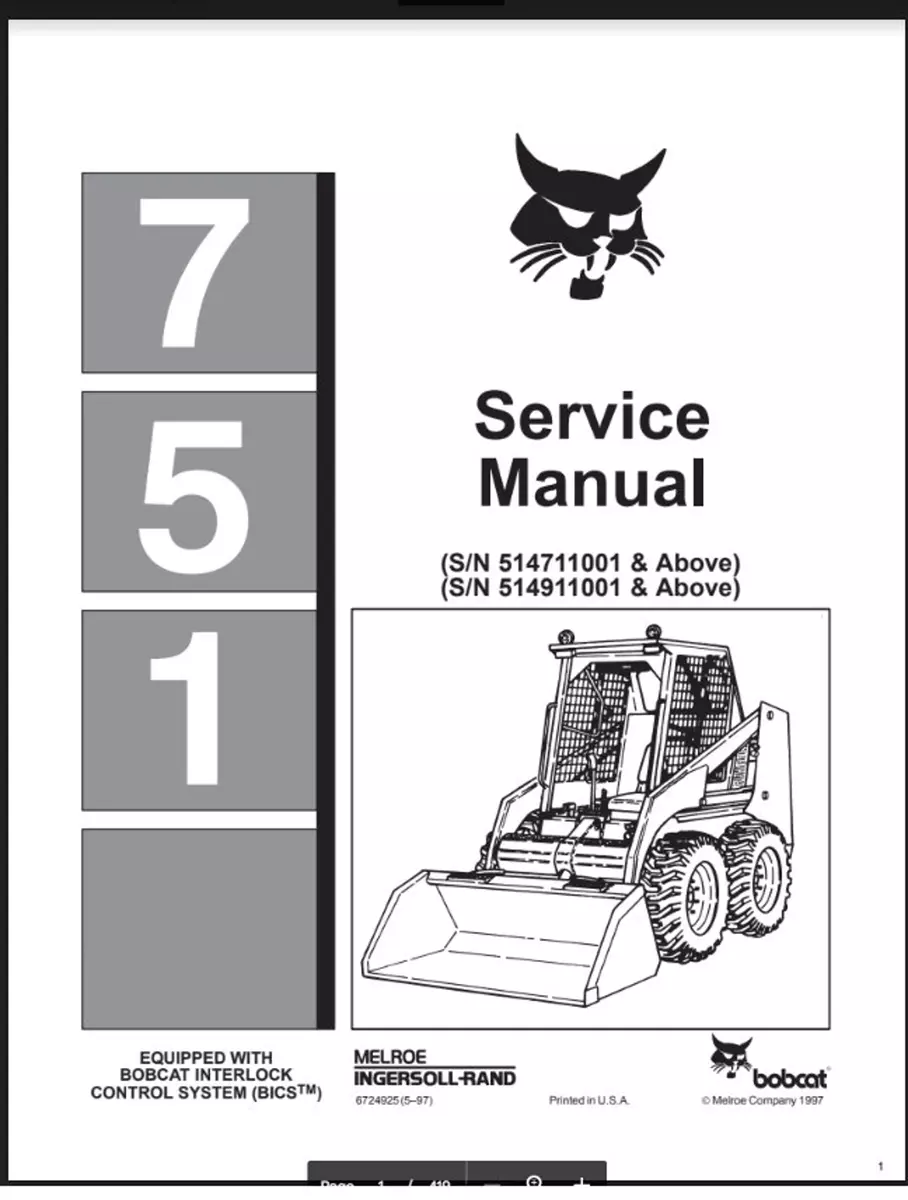 751 Service Repair Manual, Skid Steer, Skid loader Manual
