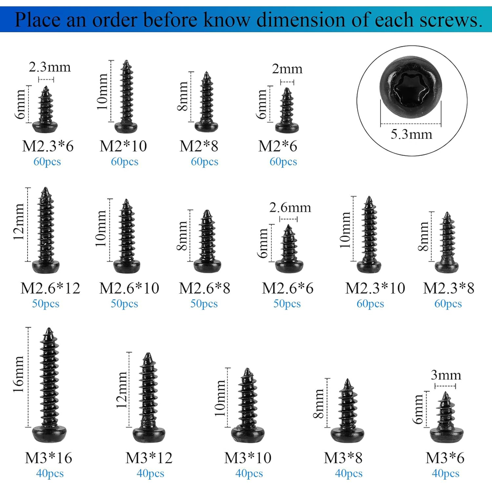 - 760Pcs Torx Pan Head Self Tapping Screws Kit, Black Carbon Steel, 15 Sizes