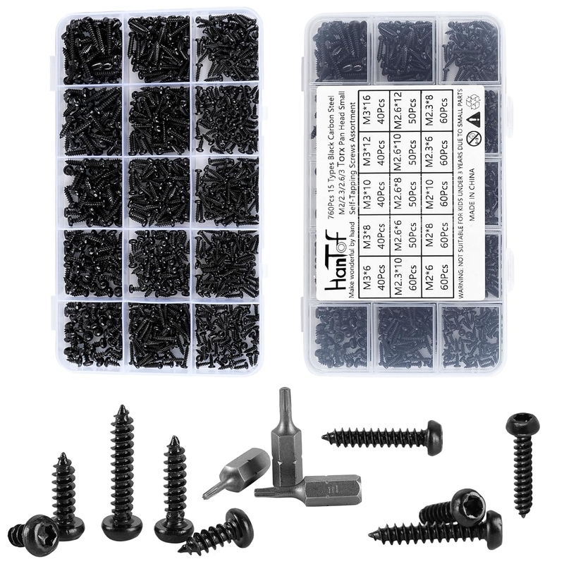 - 760Pcs Torx Pan Head Self Tapping Screws Kit, Black Carbon Steel, 15 Sizes