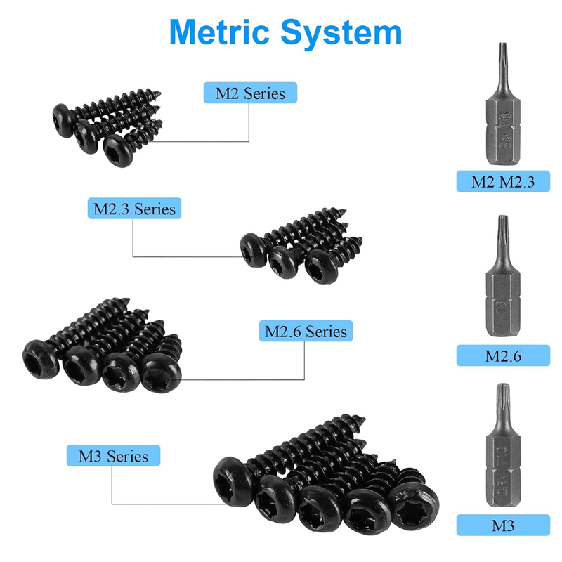 Wide Range of Sizes: Includes 15 sizes (M2, M2.3, M2.6, M3) for versatile use in different applications