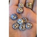 8 Antique Button Blue China Stencil Pattern Diminutive 3/8" Hard To Find.