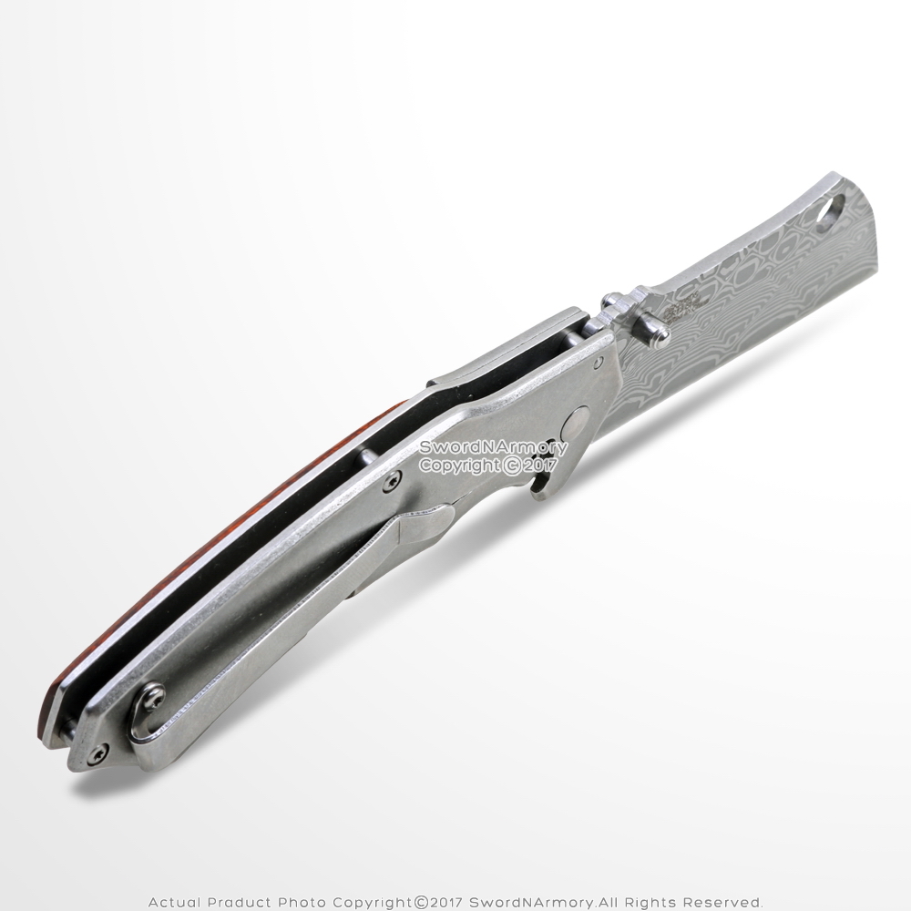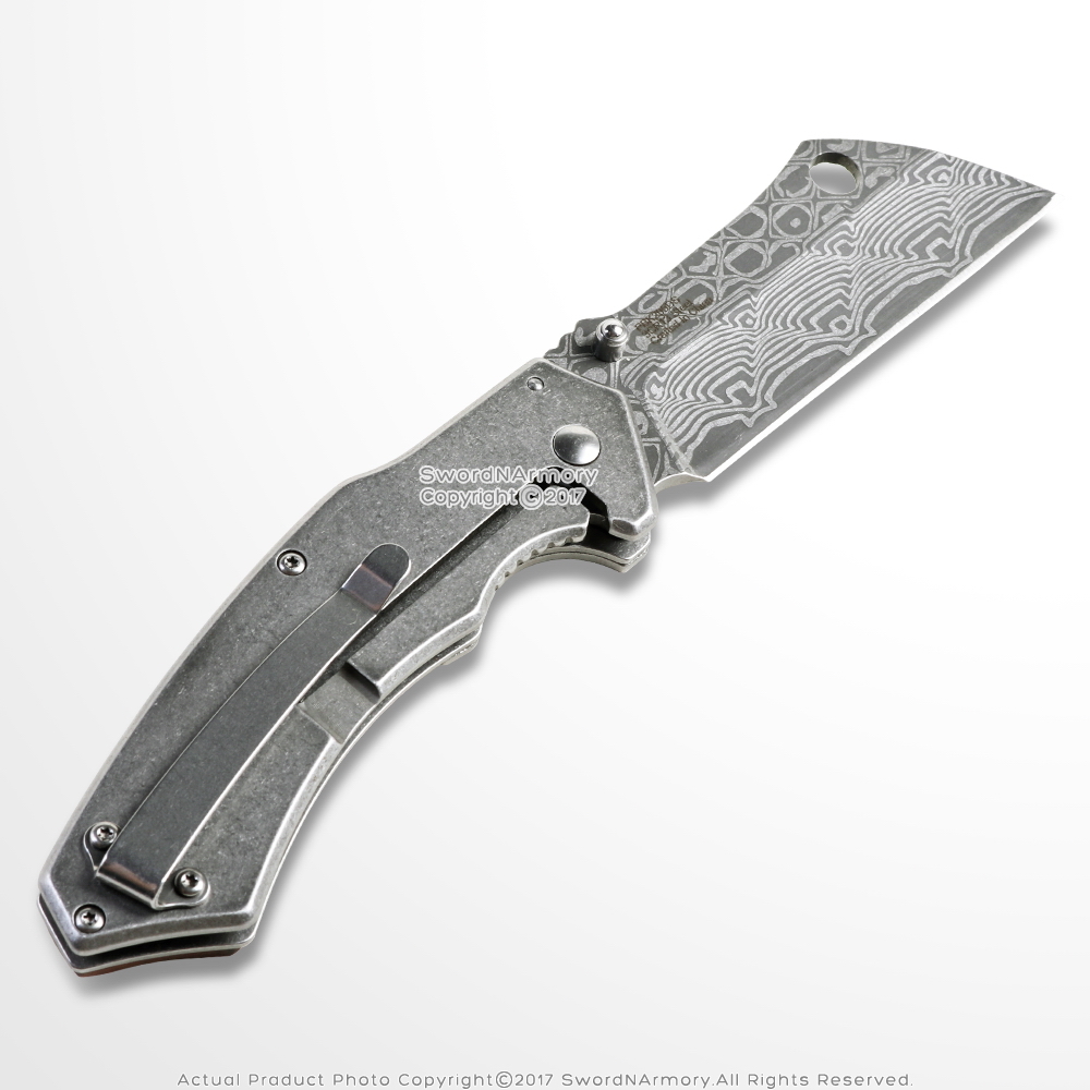 New Spring Assisted Open Pocket Knife Damascus Design Cleaver Razor.