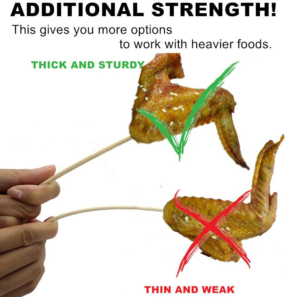 ? MADE OF BAMBOO - The biodegradable party stick skewers are made of 100% natural bamboo that is the perfect alternative to wasteful single-use materials. This organic construction makes these decorative kabobs highly durable and very sturdy.