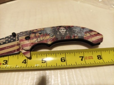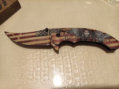 - 8" Patriotic Native American Pocket Knife Blade Assist-Open Folding Knife