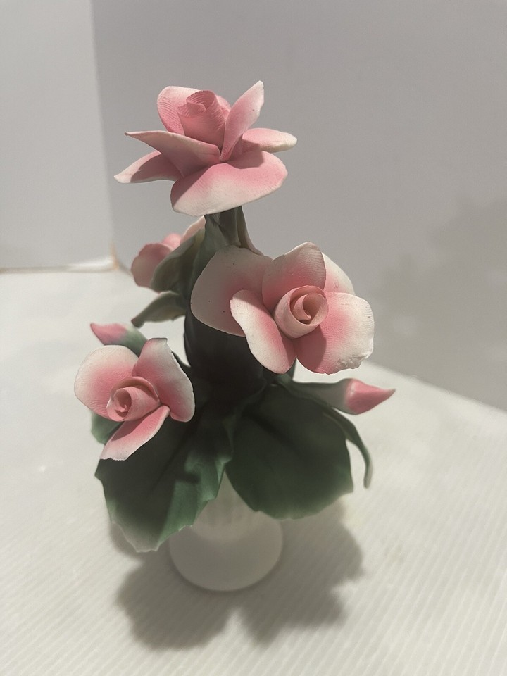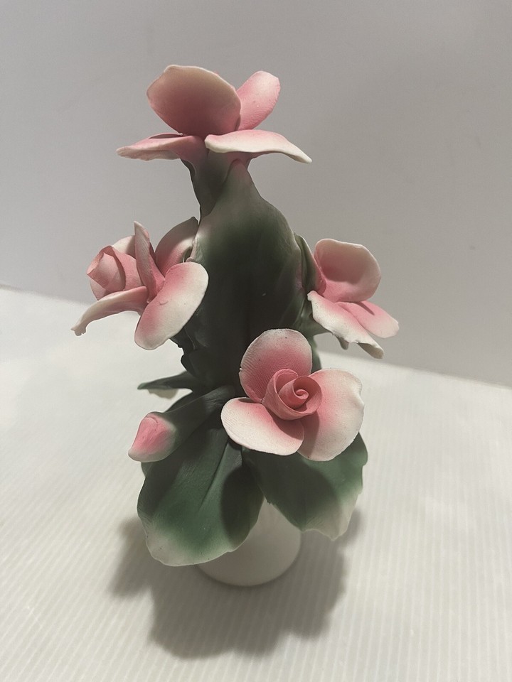 8" Porcelain Capodimonte Little Pink Flowers in White Vase