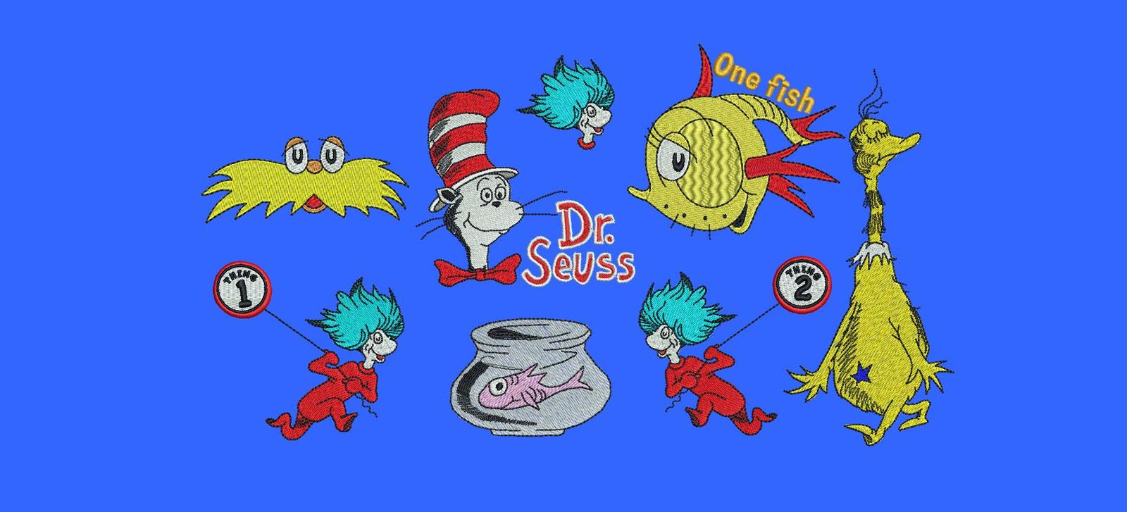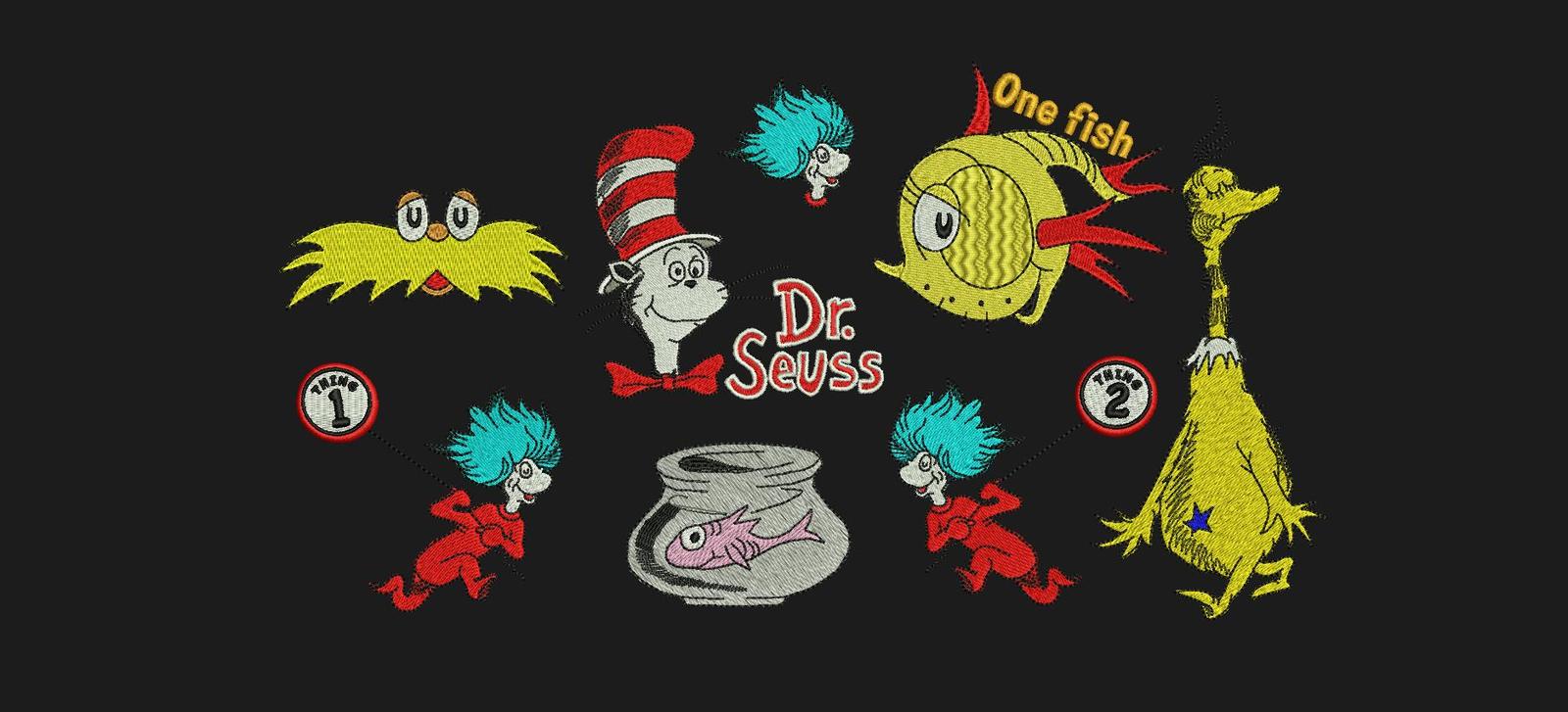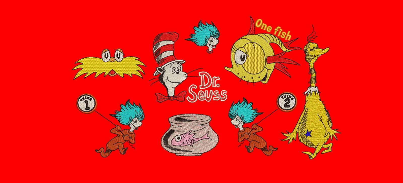 8 designs: Cat in the Hat Dr Seuss digitized embroidery designs Digital Download
