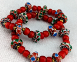 - 8 mm Antik Venezianisch Preiselbeerrot Weiß Herz Chevron Perlen Armband