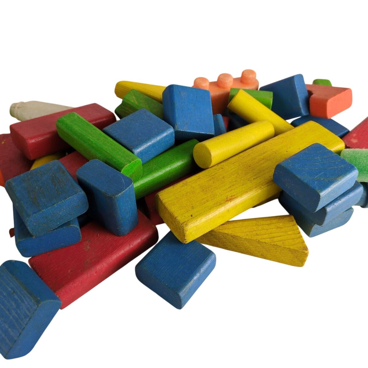 80pc Lot Vintage 60s 70s 80s Toys Wooden Blocks Tomy Camera Teacups Firetruck+