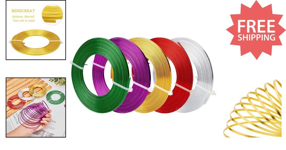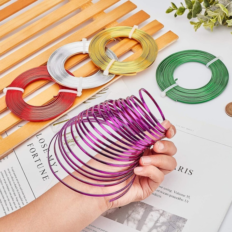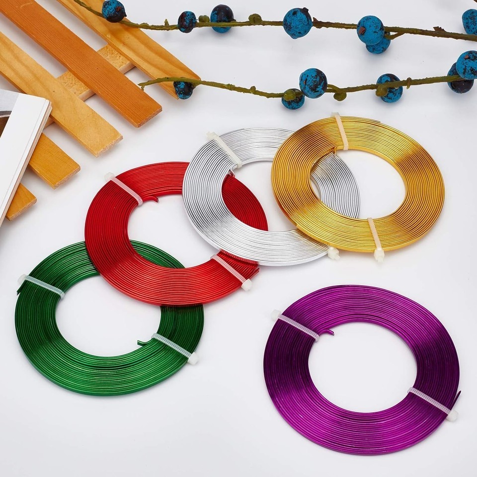 Discover our versatile set of 5 rolls of 18-gauge flat wire, each 16.5 feet long, totaling 82 feet of aluminum wire. Featuring five vibrant colors?silver, gold, purple, blue, and red?it?s perfect for jewelry creation, sculptures, gemstone wrapping, and DIY crafts. The soft, flexible, and rust-free design allows easy bending and cutting, while its long-lasting, shiny finish resists flaking. Ideal for detailed stamping and personalized designs. To ensure fast and reliable delivery, we work with multiple fulfillment partners and suppliers. Depending on availability and location, your order may ship from different warehouses or arrive in packaging that varies from item to item. Tracking details are typically provided shortly after shipment, and customer satisfaction remains our top priority. Please note that due to carrier policies and regional regulations, certain items may not be eligible for delivery to specific states or territories.