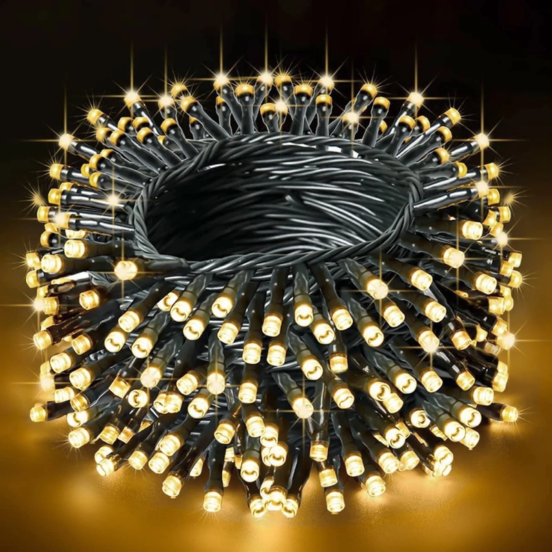 Elevate your holiday decorations with our 82ft warm white Christmas string lights! With 1000 twinkling LEDs, the plug in string lights create a cozy and enchanting atmosphere perfect for Thanksgiving, Christmas, and more. Designed with safety in mind, these copper wire lights remain cool to the touch and are suitable for indoor and outdoor use. With 8 light modes and an easy-to-use push-button controller, you can effortlessly set the perfect mood for any occasion. Plus, they come neatly packaged on a spool for hassle-free storage. Brighten your celebrations and create lasting memories with these beautiful LED string lights!