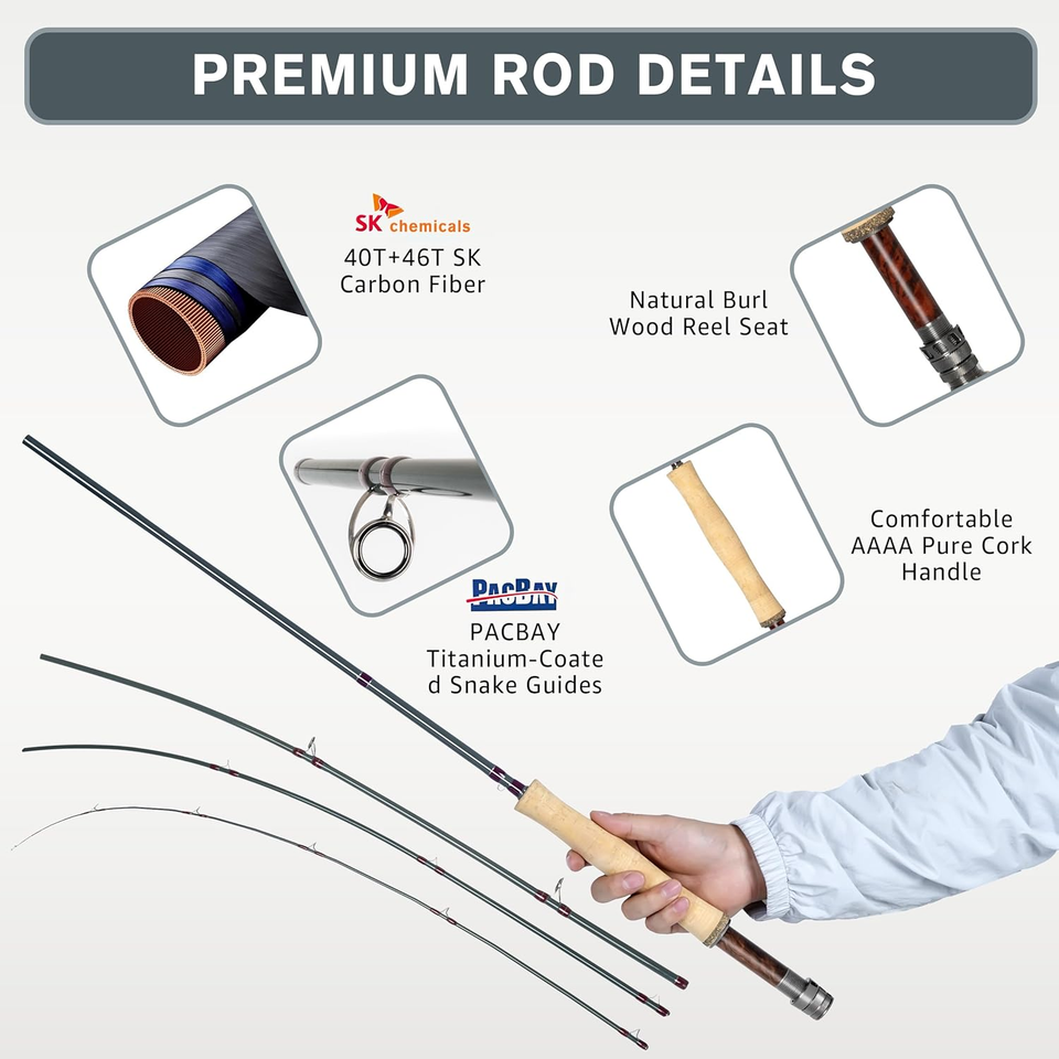 - 8Fans Fly Fishing Rod 8.5FT 4WT Fast Action w/ Tube • AAAA Cork • PacBay Guides