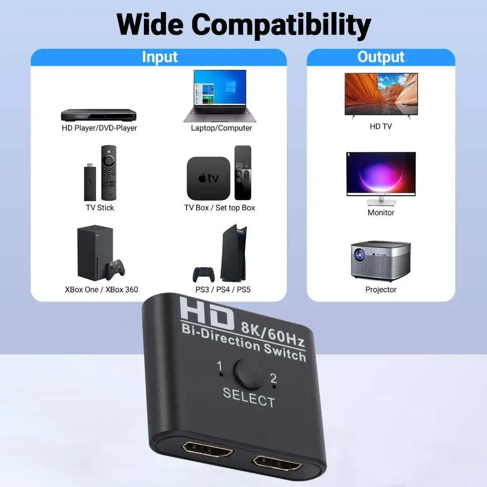 - 8K 60Hz HDMI-Compatible Switch Splitter Bi-Direction 1x2/2x1 HDMI-compatible Swi